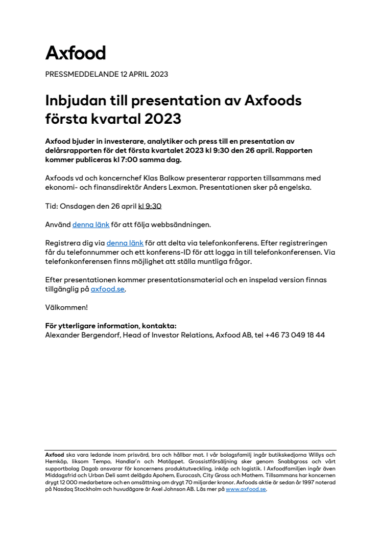 Inbjudan till presentation av Axfoods första kvartal 2023.pdf
