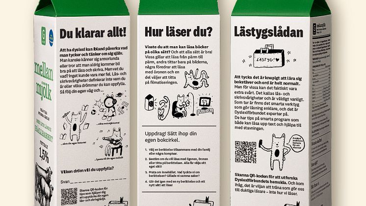 Över 500 000 svenskar har dyslexi. I varje skolklass har 1–2 barn dyslexi, och ännu fler har lässvårigheter. Tillsammans uppmärksammar nu Dyslexiförbundet och Axfood de utmaningar många har. Under flera månader varvas information om läs- och skrivsvårigheter med övningar och tips om vad man själv kan göra för att lära, stötta och få hjälp på Garants mejeriförpackningar.
