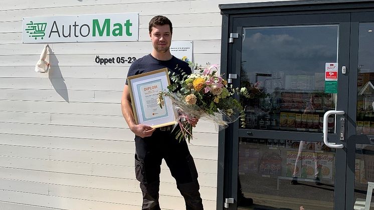 - Det känns otroligt roligt att bli utsedd till Årets Fria Servicehandlare, och hedervärt att bli den första att motta priset med en obemannad livsmedelsbutik. I dagsläget har vi en hållbar verksamhet och nöjda kunder i fem butiker på olika orter, och under året är planen att öppna 10-15 till. Så vinstpengarna kommer att återinvesteras i verksamheten för att ta kedjan framåt, säger Edvin Johansson.