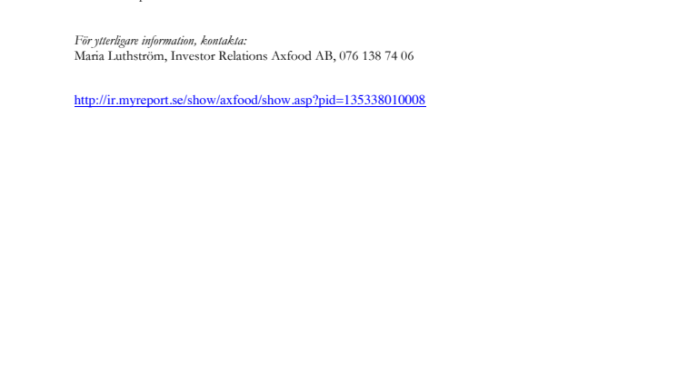 Maria Luthström, Investor Relations Axfood AB, 076 138 74 06