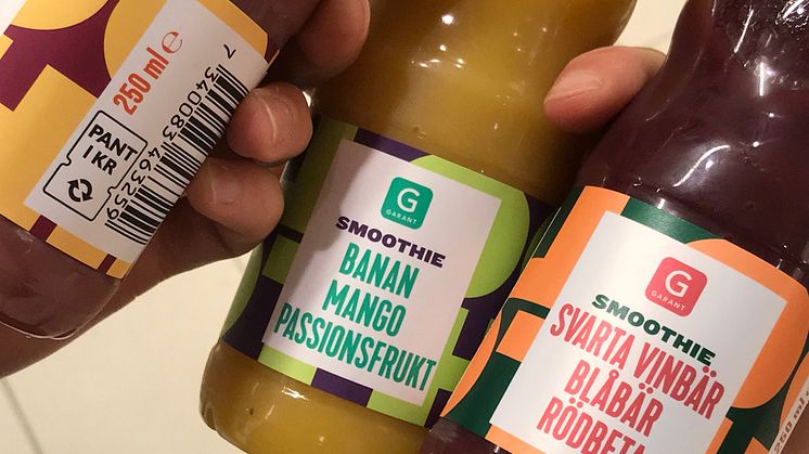Axfood fortsätter att lansera förpackningar som fungerar i pantsystemet. Senaste satsningen är smoothies i plastflaskor av Axfoods eget märke Garant.