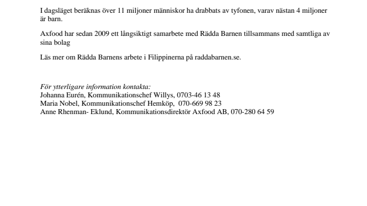 Willys och Hemköp stödjer Rädda Barnens arbete i Filippinerna