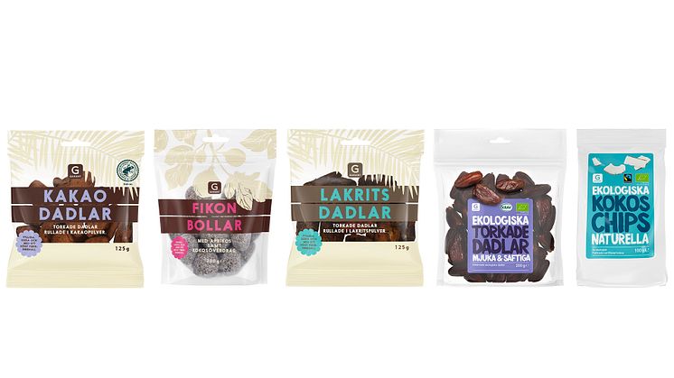 Nu släpps fem nya snacks från Garant bestående av fikonbollar och torkad frukt. Produkterna innehåller inget tillsatt socker. Bland nyheterna ingår kakaodadlar, lakritsdadlar och fikonbollar samt ekologiska torkade dadlar och ekologiska naturella kokoschips.