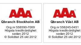 Qbranch Stockholm, Qbranch Syd och Qbranch Väst har nu alla uppnått det högsta kreditbetyget ett aktiebolag kan få, AAA. Betyget innebär att Qbranch anses vara ett av de skötsammaste företagen i Sverige.