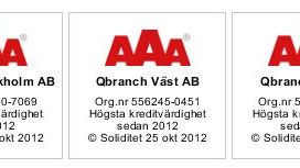Qbranch Stockholm, Qbranch Syd och Qbranch Väst har nu alla uppnått det högsta kreditbetyget ett aktiebolag kan få, AAA. Betyget innebär att Qbranch anses vara ett av de skötsammaste företagen i Sverige.