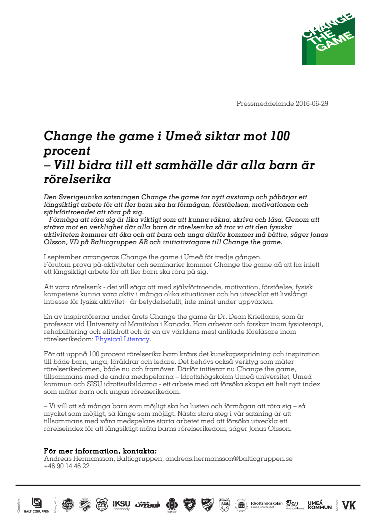 Den Sverigeunika satsningen Change the game tar nytt avstamp och påbörjar ett långsiktigt arbete för att fler barn ska ha förmågan, förståelsen, motivationen och självförtroendet att röra på sig.
