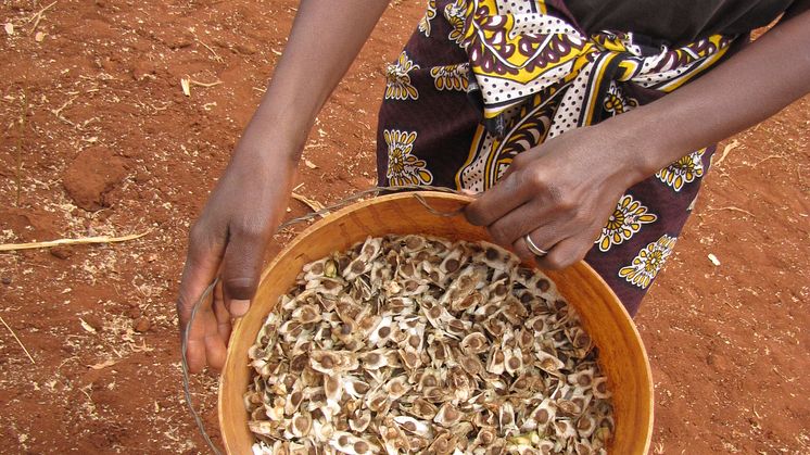 Moringaträdet kan växa i mycket torrt klimat och den växer 3-4 meter bara första året. Det går att utvinna olja som både kan användas till belysning, matlagning och även som grund i produktion av naturliga skönhetsprodukter. Den här typen av produkter går att sälja på marknaden vilket ger utsatta familjer möjlighet att försörja sig.
