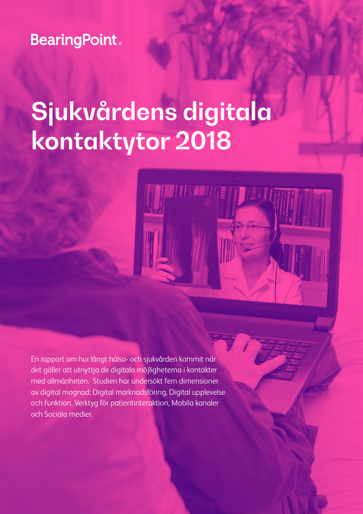 En rapport om hur långt hälso- och sjukvården kommit när det gäller att utnyttja de digitala möjligheterna i kontakter med allmänheten. Studien har undersökt fem dimensioner av digital mognad: Digital marknadsföring, Digital upplevelse och funktion, Verktyg för patientinteraktion, Mobila kanaler och Sociala medier.