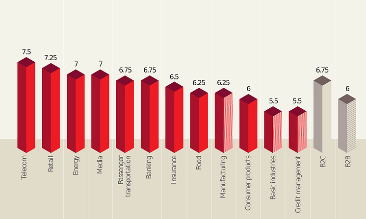 Branscher som är bäst på digitalisering i Sverige på en skala 4 till 10
