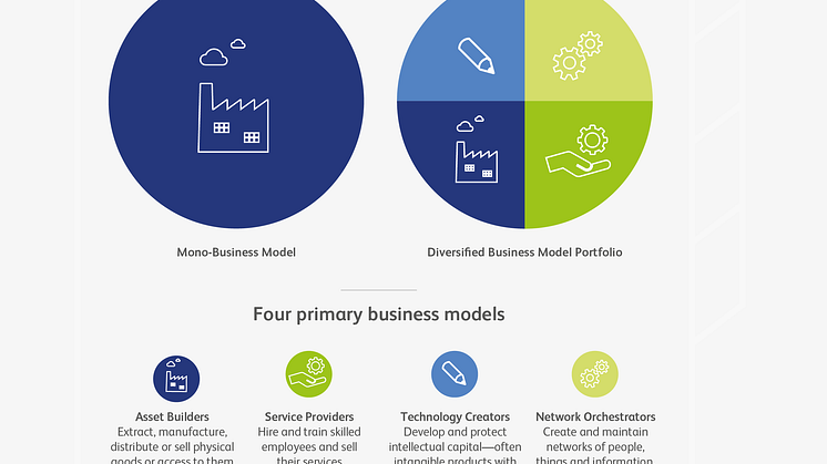 Today, firms that adopt a portfolio of business models which are asset light and include network effects are perceived by investors and the market as most likely to generate future growth. They therefore have a much higher market value in comparison to companies with traditional business models. Companies who diversified their business models improved their valuation in 2016 by 65% in comparison to those who maintained a mono-business model. Furthermore, between 2011 - 2016 they managed to generate a growth of 8% versus 4%.