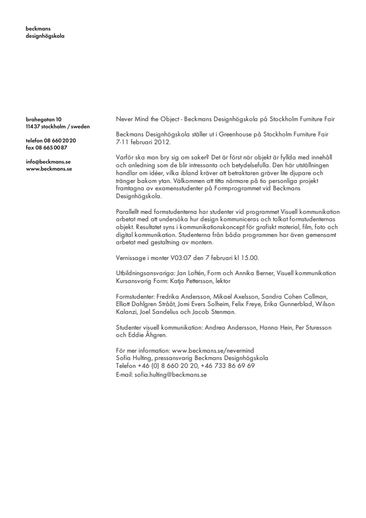Never Mind the Object - Beckmans Designhögskola på Stockholm Furniture Fair 2012