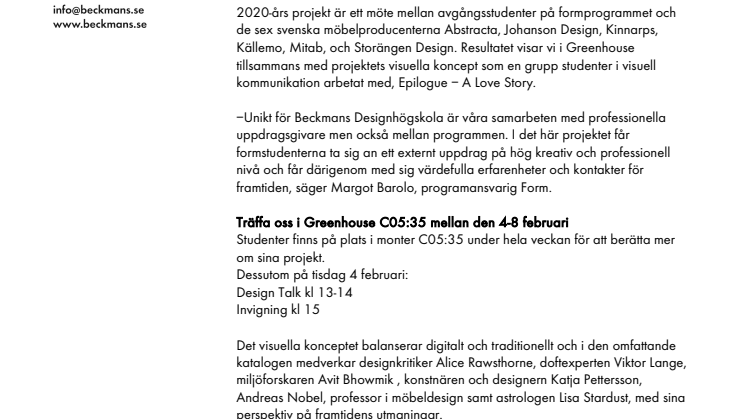• Pressmeddelande - Beckmans Design Collaboration 2020