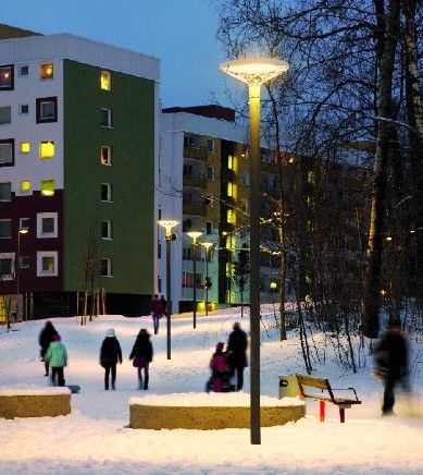 Ett exempel på ett trygghetsprojekt i Albyparken i Botkyrka kommun, ljusdesign: Olsson & Linder