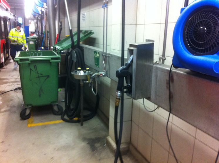 Befintlig tvätt- och reningsanläggning är från 70-talet och klarar inte dagens höga krav på rening, som bl.a. innebär att inget vatten får brädda tillbaka till kommunens spillvatten orenat. I tvätthallarna företas förutom busstvätt även städarbeten för bussarna, inkluderande centraldammsugningssystem, möjlighet till våtrengöring invändigt osv. I hallarna tankas bussarna, möjlighet till påfyllning av vätskor och oljor skall finnas på ett sätt som möjliggörs för de bussfabrikat och typer av dessa som finns inom depån.