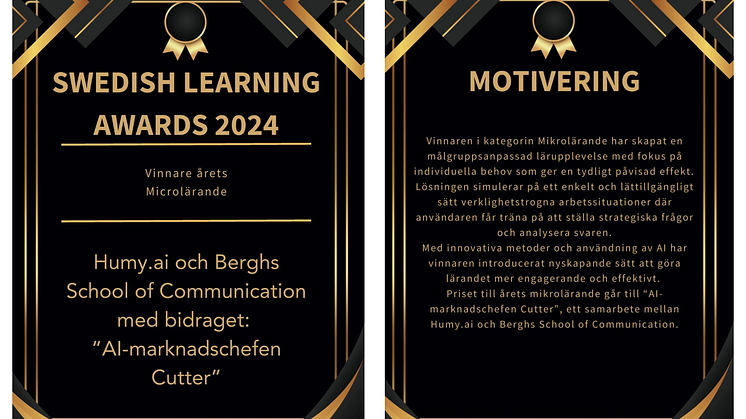 VINNARE AV "ÅRETS MICROLÄRANDE" I SWEDISH LEARNING AWARDS 2024