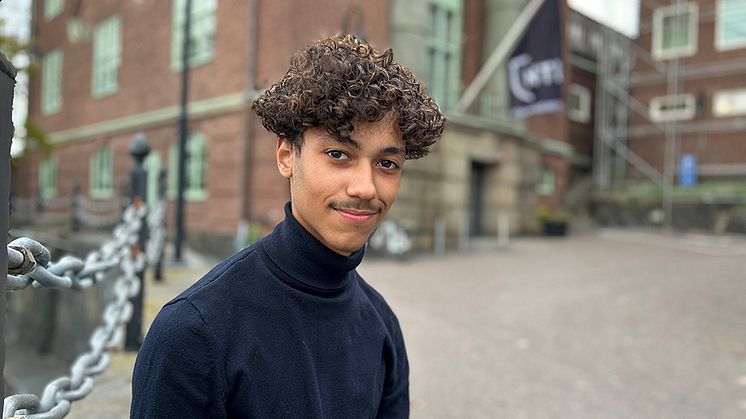 Vi träffas på Chalmers Campus Johanneberg i Göteborg. Hit åker Kenny varje dag med spårvagnen från Bergsjön för att gå andra året på NTI-gymnasiets teknikprogram.