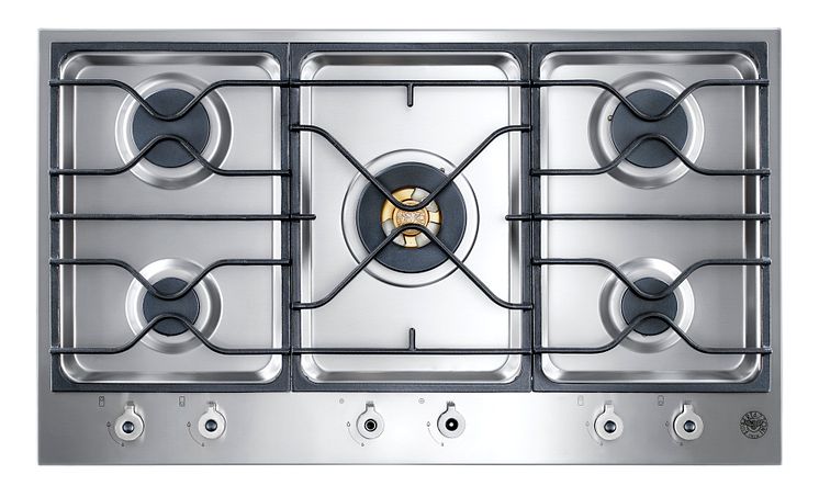 Brännarlocket för wokbrännaren är i solitt mässing med Bertazzonis signum-logga. Brännarhuvuden på samtliga brännare är även dessa i mässing.