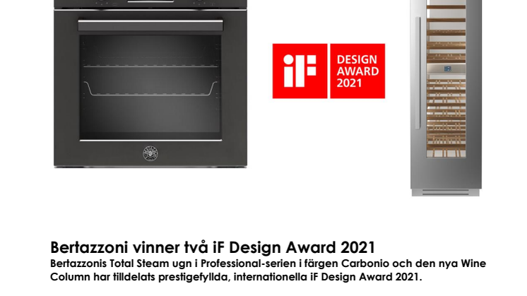 Bertazzonis Total Steam ugn i Professional-serien i färgen Carbonio och den nya Wine Column har tilldelats prestigefyllda, internationella iF Design Award 2021.