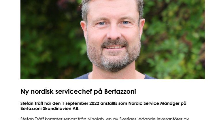 Stefan Träff har den 1 september 2022 anställts som Nordic Service Manager på Bertazzoni Skandinavien AB.