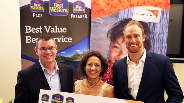 En check på 30 000 AUD delades ut till Shona Langridge, World Vision på BEST WESTERN PLUS Hotel Stellar i Sydney igår av Steve Richards, Best Western Australiens General Manager för försäljning och marknadsföring och Paul Hodda, Best Westerns MedlemsDirektör. Pengarna har samlats in från auktionsvinster från tidigare Best Western sammankomster samt två personliga donationer på 1 000 AUD vardera, från Paul Hodda och Best Western Australiens VD, Phil Hateley.