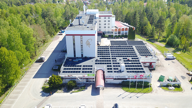 Under juni månad installerar Best Western Gustaf Fröding 322 stycken solpaneler på hotellets tak, vilket kommer att producera omkring 137 019 kWh per år. Anläggningens solcellsgeneratoreffekt ligger på 178,71 kWp och beräknas stå klar i slutet av juni - lagom till att ta vara på sommarens alla soltimmar. Under sommarmånaderna kommer hotellet vara helt självförsörjande på sol-el under dygnets ljusa timmar.
