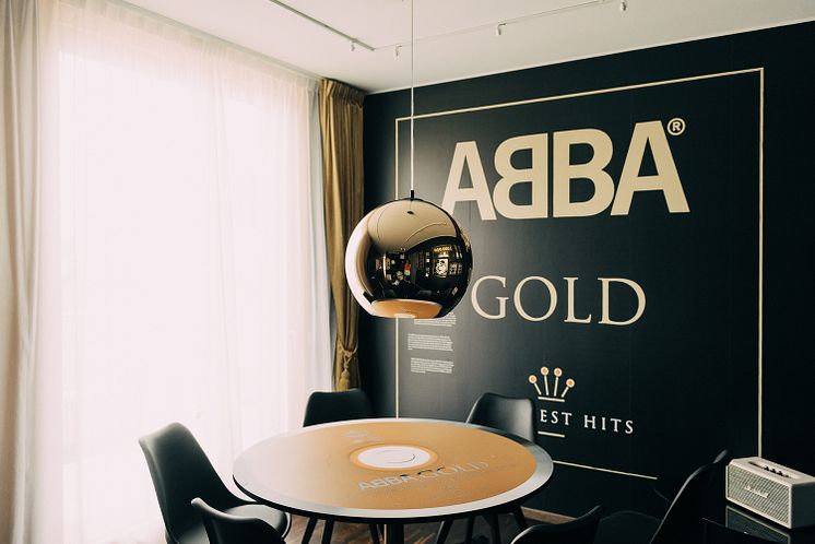 ABBA Gold-albumet gavs ut 1992, tio år efter att ABBA tog en paus. Albumet har sålt i 30 miljoner exemplar och räknas som en av de största skivframgångarna för ABBA och är den mest sålda CD-skivan genom tiderna i popens hemland England. I samarbete med ABBA The Museum och som en hyllning till ABBA-musikens återuppståndelse under 90-talet världen över, har Pop House Hotel skapat ett ABBA Gold-rum i en av juniorsviterna. Med utsikt över Stockholms äldsta nöjesscen (Gröna Lund) och Saltsjön kan gästen sjunka ner i guldkantade drömmar och känna sig som en popstjärna för en stund. Rummet är perfekt för det lilla kreativa mötet och kan kanske vara en inspiration till nya framgångar. Rummet går i glittrande guld och blänkande svart. Guld-gardiner, guld-speglar och den enorma Tom Dixon-lampan ger en exklusiv känsla.