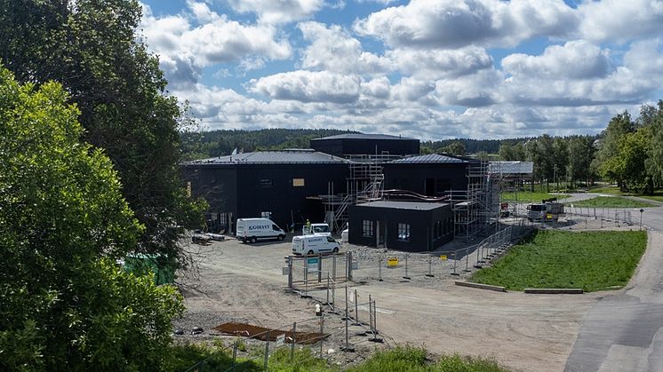 Under våren har montage av stommen i betong färdigställts och både plåtslagarna och ventilationsmontörerna har kunnat påbörja sitt arbete. Örjan och kollegorna fick vara på tårna för att få ventilationsaggregaten levererade i rätt tid och placerade i fläktrummen innan byggnadens tak lyftes på plats. Örjan passade också på att ringa in Alingsås Isolering för ett mindre jobb innan taket var på plats, eftersom att det sedan blir trångt och svårt att komma åt. Häggners Plåtslageri har dessutom varit ute och påbörjat plåttaket.