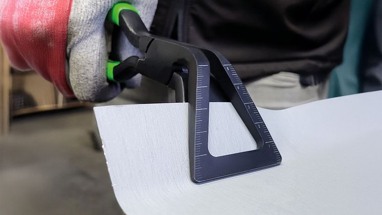 På falstången UltraVision finns en graderad skala med millimeter, upp till 50 mm. Detta gör att man inte behöver märka upp avståndet på plåten innan man ska falsa. Istället läser man av falsens bredd direkt på tången och viker sedan upp plåten i samma grepp. -