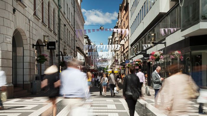 Bibliotekstan - I det cirka 30 000 kvadratmeter stora området, Biblioteksgatan och kringliggande gator, finns 120 butiker. Tillsammans omsätter de omkring 1,5 miljarder kr per år.