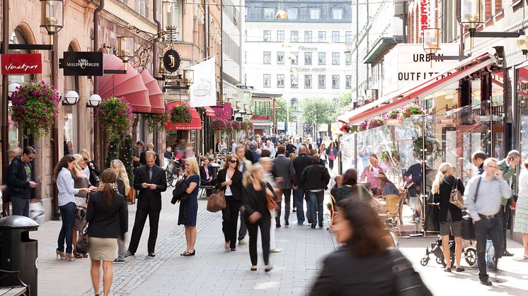 Bibliotekstan - I det cirka 30 000 kvadratmeter stora området, Biblioteksgatan och kringliggande gator, finns 120 butiker. Tillsammans omsätter de omkring 1,5 miljarder kr per år.