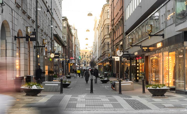 Bibliotekstan - I det cirka 30 000 kvadratmeter stora området, Biblioteksgatan och kringliggande gator, finns 120 butiker. Tillsammans omsätter de omkring 1,5 miljarder kr per år.