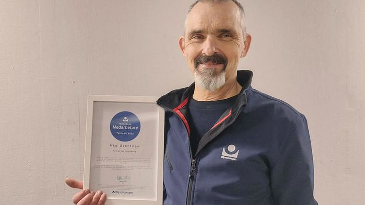 I februari utsågs Åke Olofsson som är besiktningstekniker på Bilprovningens station i Strömsund till månadens medarbetare. På bilden ses den välförtjänta vinnaren med sitt diplom.