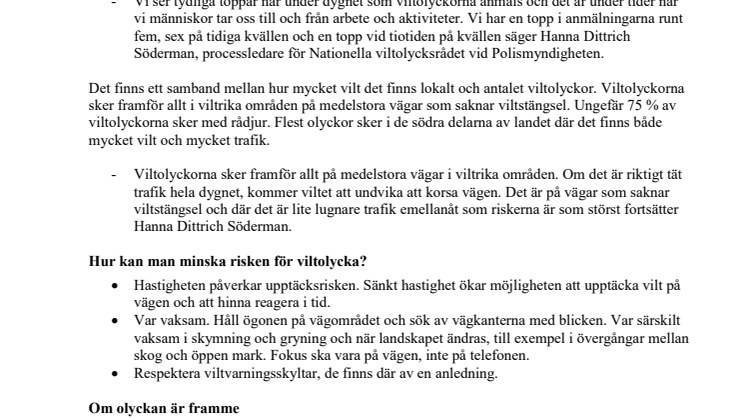 Information om olycksdrabbade vägar, länsvis olycksstatistik och mer information om Nationella viltolycksrådet finns på www.viltolycka.se.