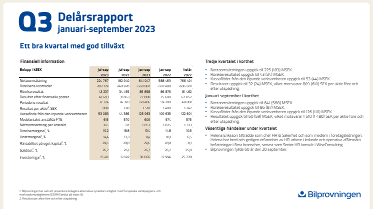 Bilprovningens delårsrapport för januari-september 2023 finns publicerad på bilprovningen.se.