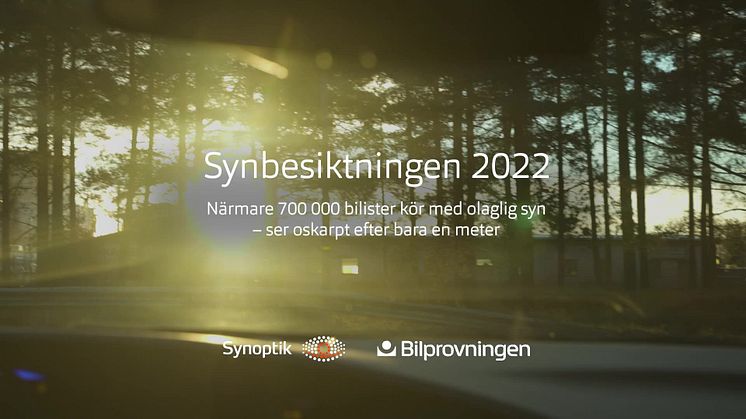 Synbesiktningen 2022 visar att 10 procent, motsvarande cirka 700 000** bilförare i Sverige, fortfarande kör med olaglig syn. Synbesiktningen har genomförts årligen sedan 2008 och över