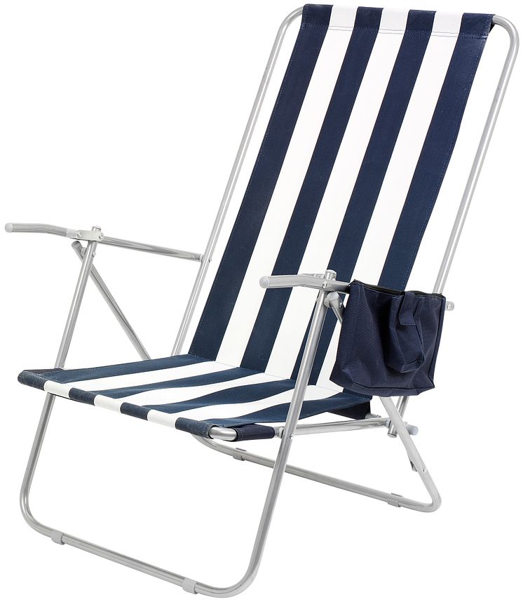 Hopfällbar, med 2 positioner. Av stålrör Ø 16 mm, med sits och rygg av polyester. Max. belastning: 120 kg. Mått, hög position: 52 x 63 x 83 cm. Pris: 99.90 SEK