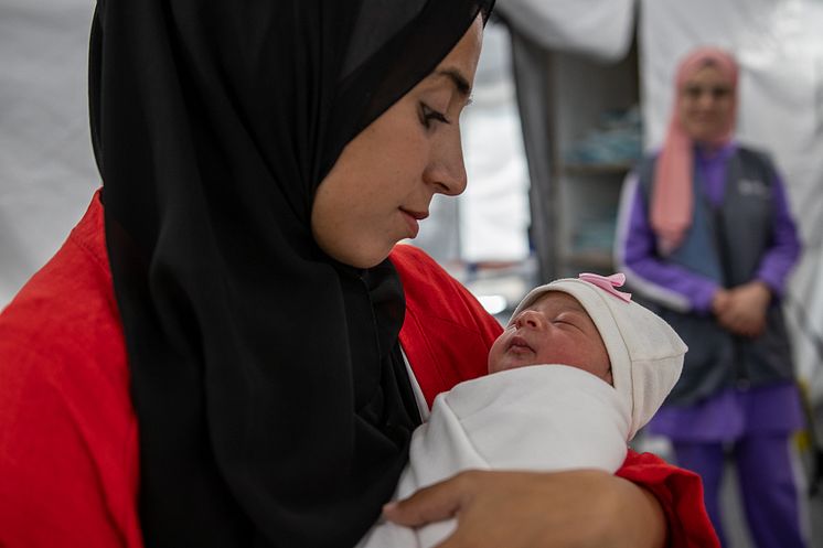 Tima holds Lana at Save the Children's maternity unit in Gaza.jpg