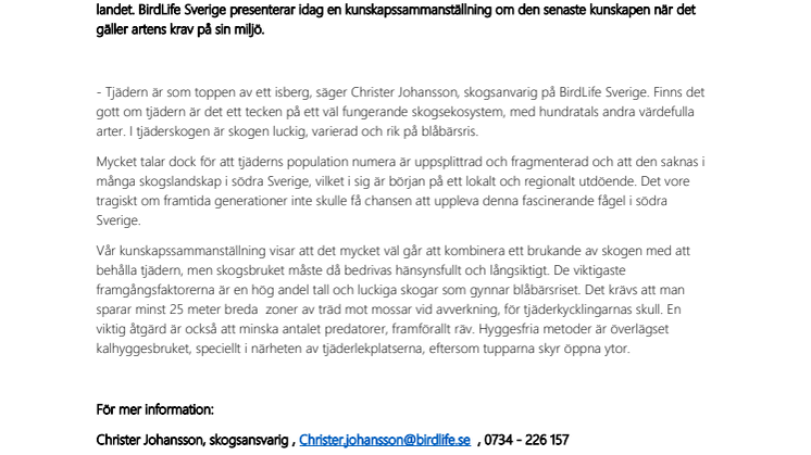 Tjädern är vår största och mest omdebatterade, men också den kanske mest fascinerande skogsfågel vi har i landet. BirdLife Sverige presenterar idag en kunskapssammanställning om den senaste kunskapen när det gäller artens krav på sin miljö.