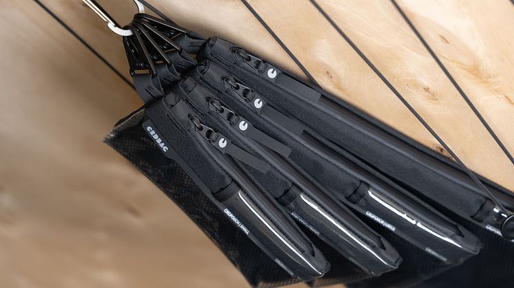 Parallellt med att ta fram väskorna utvecklade företaget också en väggförvaring som fått namnet CRDWALL där man med krokar kan hänga upp utrustning.