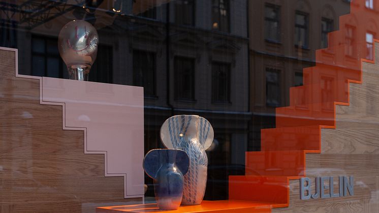 Av skyltfönstren i Bjelins showroom har inredningsarkitekterna från Joyn Studio skapat ett tittskåp för handplockade konstobjekt från The Ode To. Välkommen att titta in på utställningen hos golvföretaget Bjelin på Sibyllegatan 38 i Stockholm under Stockholm Design Week!