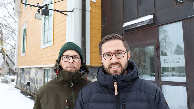 • Per Boman och Oscar Lundkvist Sund utanför ingången till Kamenski.