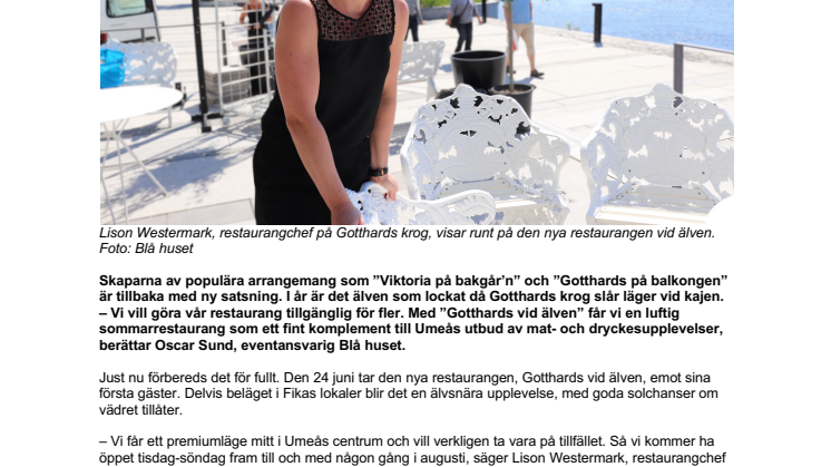 – Vi vill göra vår restaurang tillgänglig för fler. Med ”Gotthards vid älven” får vi en luftig sommarrestaurang som ett fint komplement till Umeås utbud av mat- och dryckesupplevelser, berättar Oscar Sund, eventansvarig Blå huset.