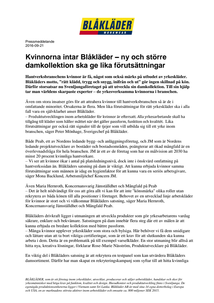 KVINNORNA INTAR BLÅKLÄDER – NY OCH STÖRRE DAMKOLLEKTION SKA GE LIKA FÖRUTSÄTTNINGAR
