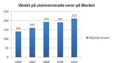 Begagnatmarknaden har växt kraftigt de senaste åren. Sedan 2006 har antalet annonser ökat med 78 % på Blocket. I dag har 7 av 10 svenskar köpt eller sålt någonting på Blocket och bland barnfamiljer är siffran 9 av 10. Det visar en riksundersökning gjord av Synovate i november 2010.
