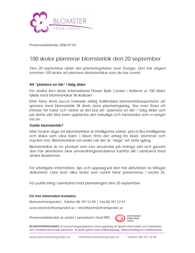 Den 20 september råder det planteringsfeber över Sverige. Den här dagen kommer 100 skolor att plantera blomsterlökar som de har vunnit.