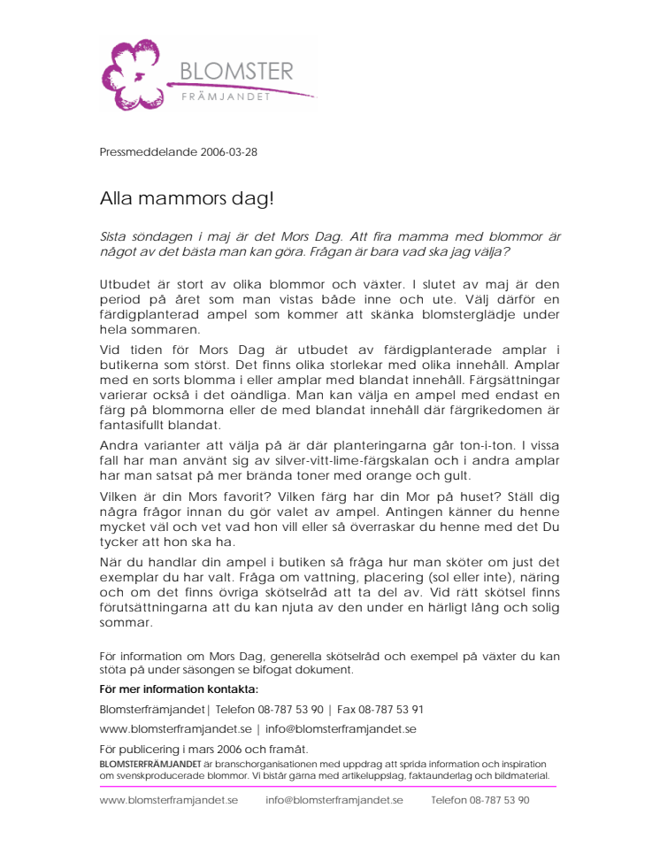 Sista söndagen i maj är det Mors Dag. Att fira mamma med blommor är något av det bästa man kan göra. Frågan är bara vad ska jag välja?