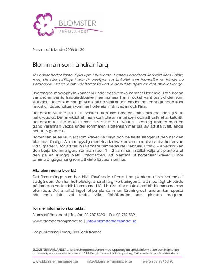Nu börjar hortensiorna dyka upp i butikerna. Denna underbara krukväxt finns i blått, rosa, vitt eller tvåfärgat och är verkligen en krukväxt som förmedlar en känsla av vardagslyx. Sköter vi om vår hortensia kan vi dessutom njuta av den mycket länge.