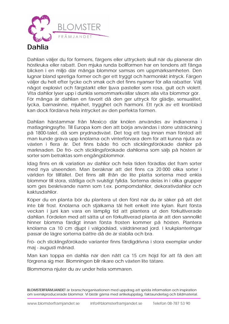 Dahlian väljer du för formens, färgens eller uttryckets skull när du planerar din höstkruka eller rabatt. Den mjuka runda bollformen har en tendens att fånga blicken i en miljö där många blommor samsas om uppmärksamheten.