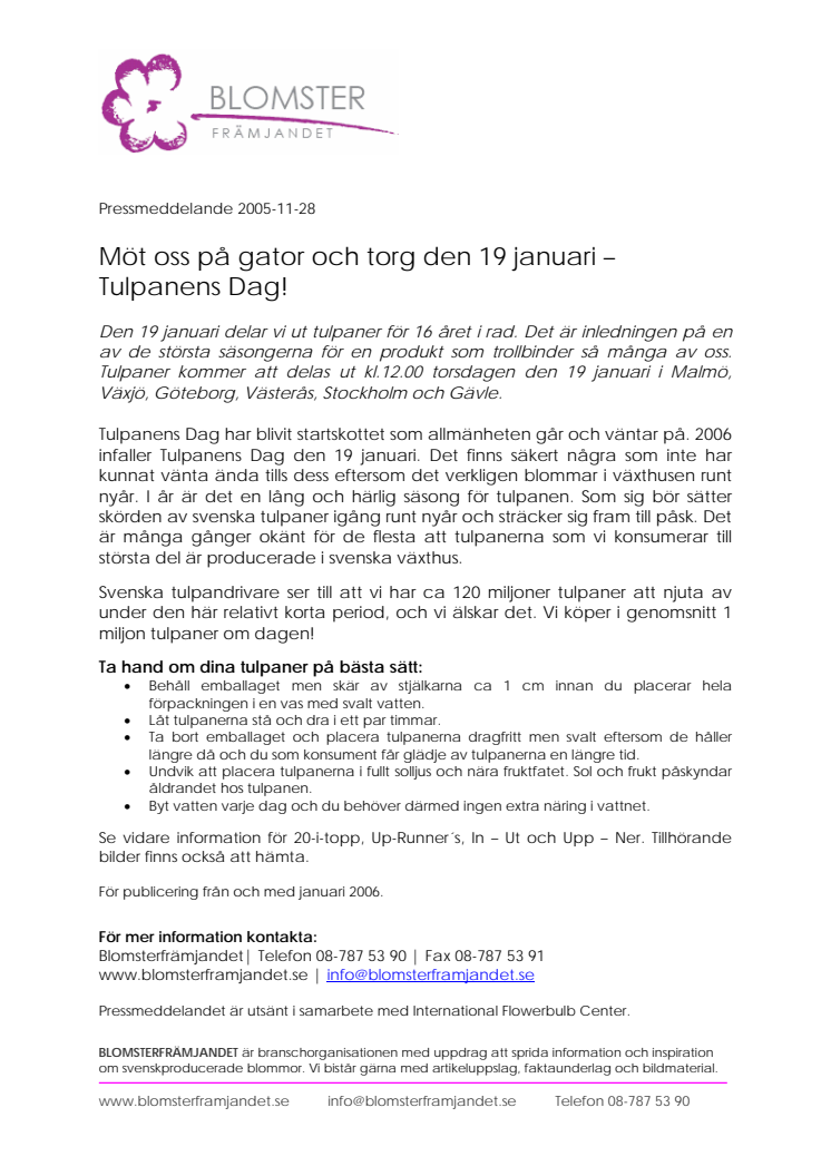 Möt oss på gator och torg den 19 januari - Tulpanens Dag!
