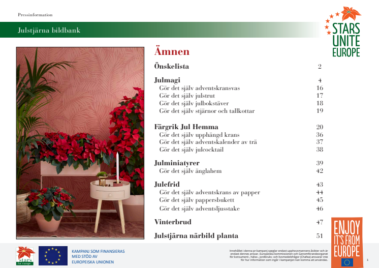 Stars for Europes bildkatalog 2019 innehåller alla nya julstjärnebilder i kampanjen och ger en fin överblick. Här finns såväl moderna som klassiska bilder både på installationer, pyssel, människor, miljöer och inredning. Ett antal DIY med steg-för-steg beskrivningar finns också med.